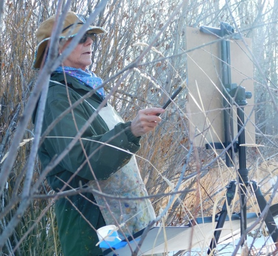 Above: Susan Gill Jackson plein air painting along the Yampa in November